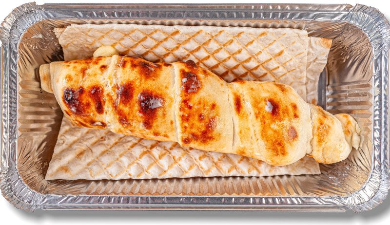 Сыр сулугуни в слоеном тесте, готовится на мангале на шампуре