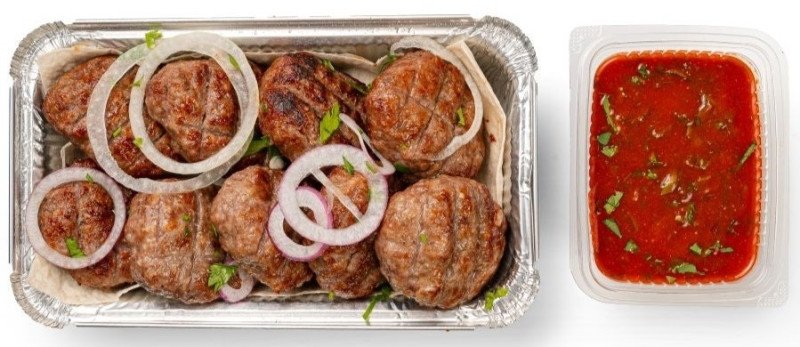 Полкило котлеток, приготовленых на мангале. К ним подается: - Соус Шашлычный 100гр - Лаваш 100гр - Лук маринованый 30гр