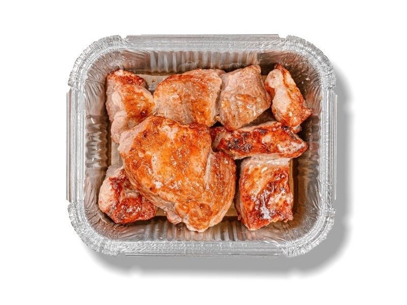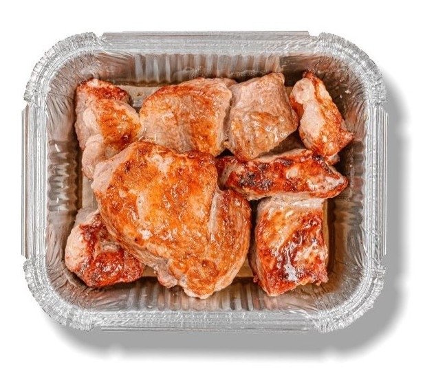 Свиная шея в классическом луковом маринаде, посыпается луком и зеленью Готовый шашлык - 200 гр Лук с зеленью - 30 гр