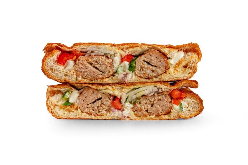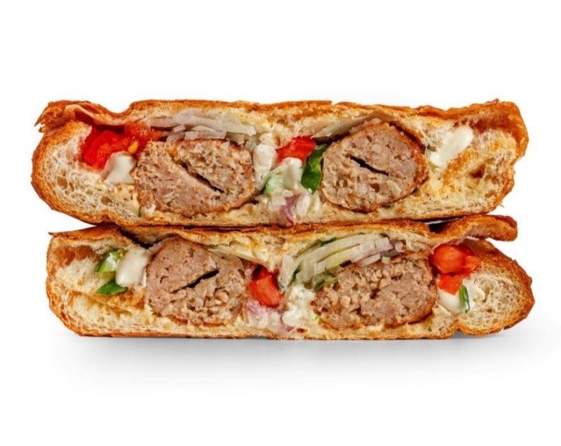 Сочный люля на выбор, в чиабатте с добавлением лука, свежих овощей и фирменного соуса.