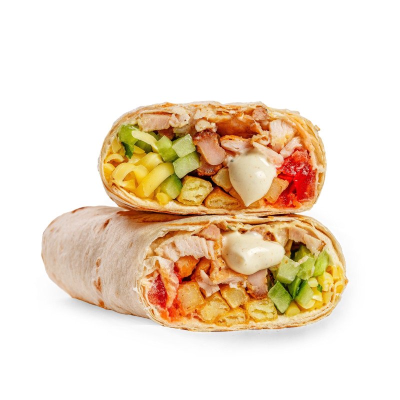 Фирменная шаурма с добавлением свежих овощей, сочного мяса с мангала, картофеля фри, сыра и нашего авторского соуса