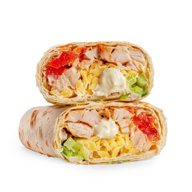 Мясо с мангала, свежие овощи, фирменный соус и много сыра